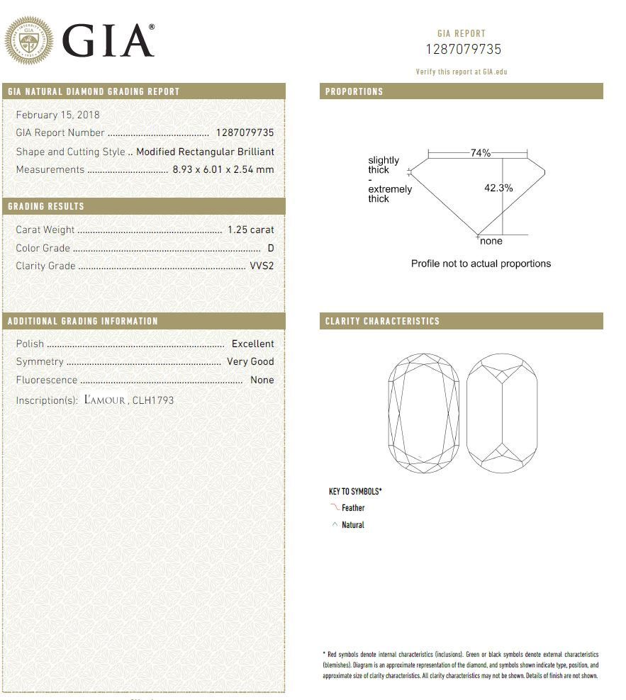 Since many people find it hard to understand the intricacies of diamond grading but wish to be sure about their purchase, many retailers will offer a certificate (usually from a third party such as GIA) that details each of the grade levels of a particular stone, as determined by a skilled grader. Some jewelers can also provide an illustration of your gem that will show the location, size, and type of inclusions that are present in the diamond making each as unique as a fingerprint.